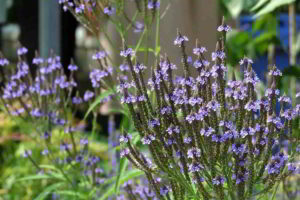 Vervain fiorisce da aprile a settembre, con fiori piccini, rosati, densamente raccolti su lunghe ed esili spighe.