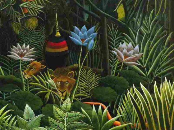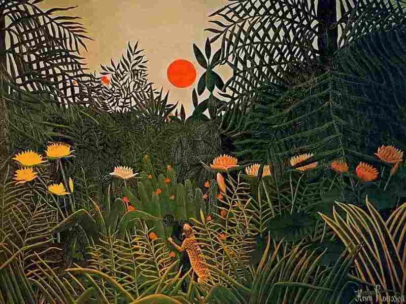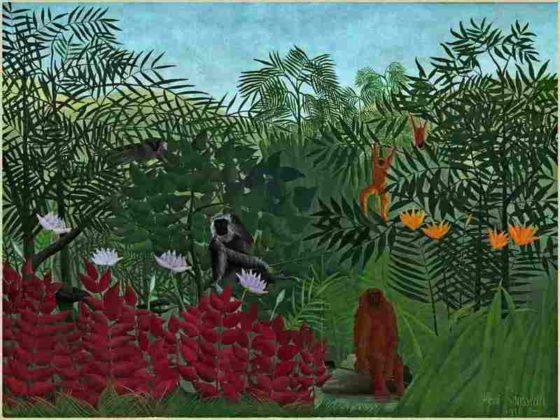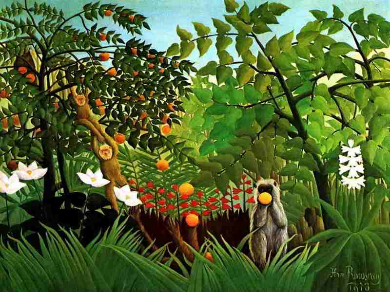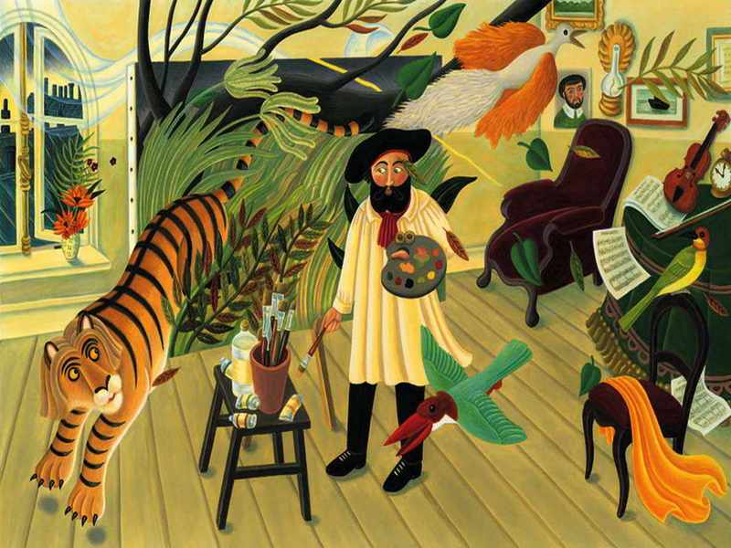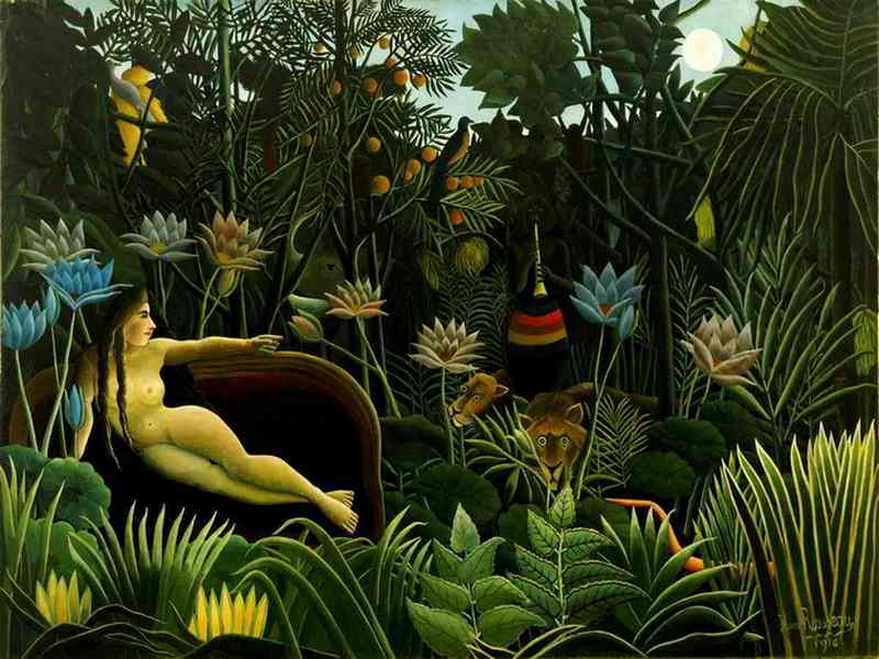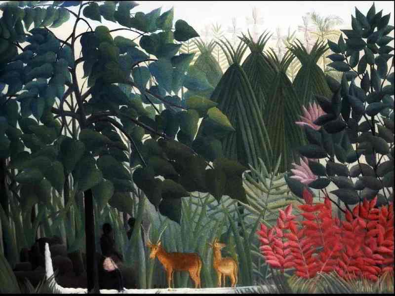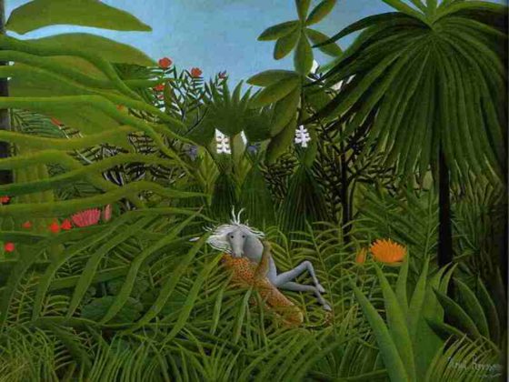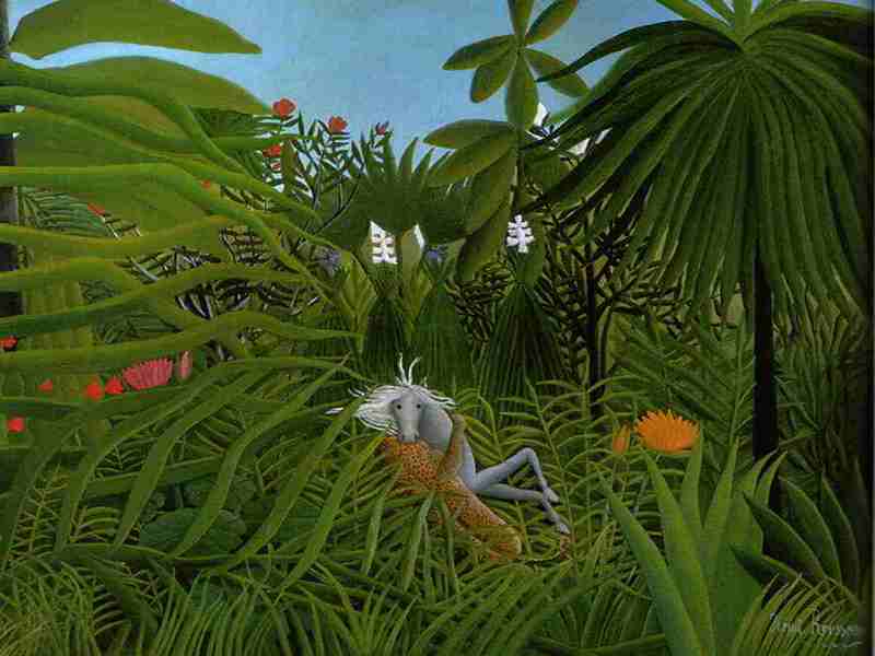 Henri Rousseau. Nato il 21 maggio 1844 a Laval, una cittadina a Nordovest della Francia, è figlio di Julien Rousseau (lattoniere e commerciante di ferramenta) e di Eléonore Guyard. Abbandonati gli studi, si arruola volontario in fanteria nel 1863 al distretto di Angers per evitare la casa di correzione in seguito al furto di pochi franchi nello studio di un avvocato e sconta un mese di pena nella prigione di Pré Pigeon. Nel 1868 morto il padre, lascia l’esercito, si trasferisce a Parigi in rue Roussellet 25, lavora per un certo periodo di tempo come segretario presso un ufficiale giudiziario e l’anno successivo si sposa con la diciottenne Clémence Boitard. Arruolato come soldato semplice durante la guerra con la Prussia nel 1870 e subito congedato poiché figlio di madre vedova, entra quindi nel 1871 come gabelliere nell’ufficio comunale del dazio di Parigi. Quest’ultimo impiego lo accompagnerà fino al 1893 e sarà il tempo e il luogo dove maturerà il suo desiderio di divenire un pittore e caratterizzerà la sua identità nel mondo artistico con il soprannome di Rousseau il Doganiere.